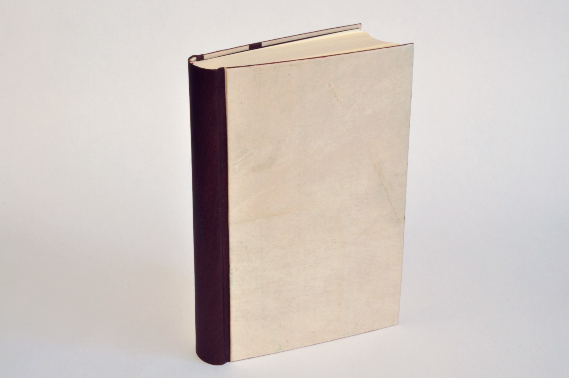 Reliure de type bradel, couvrure en papier japonais teinté. Tranchefiles brodées au fil de soie.
