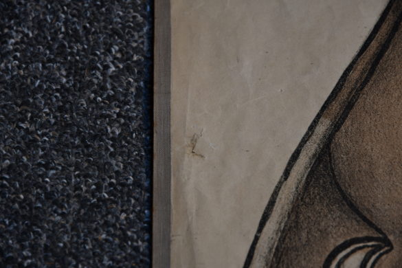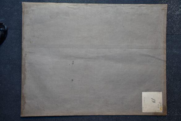 Double consolidation intérieure des plis par toile et papier Japon. Mise au ton.