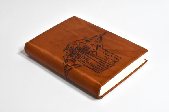 Dos long, couvrure en plein cuir de vachette. Charnières en cuir de vachette. Tranchefiles modernes brodées au fil de soie sur simple septain. Gardes en papier vélin.